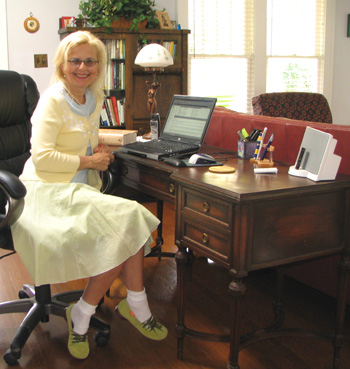 It's the perfect desk for me. I just love it and the price was right. I have four fancy bookmarks to give away to readers. You don't have to do anything special. Simply send an email to: enter-to-win@emailbookclub.com
